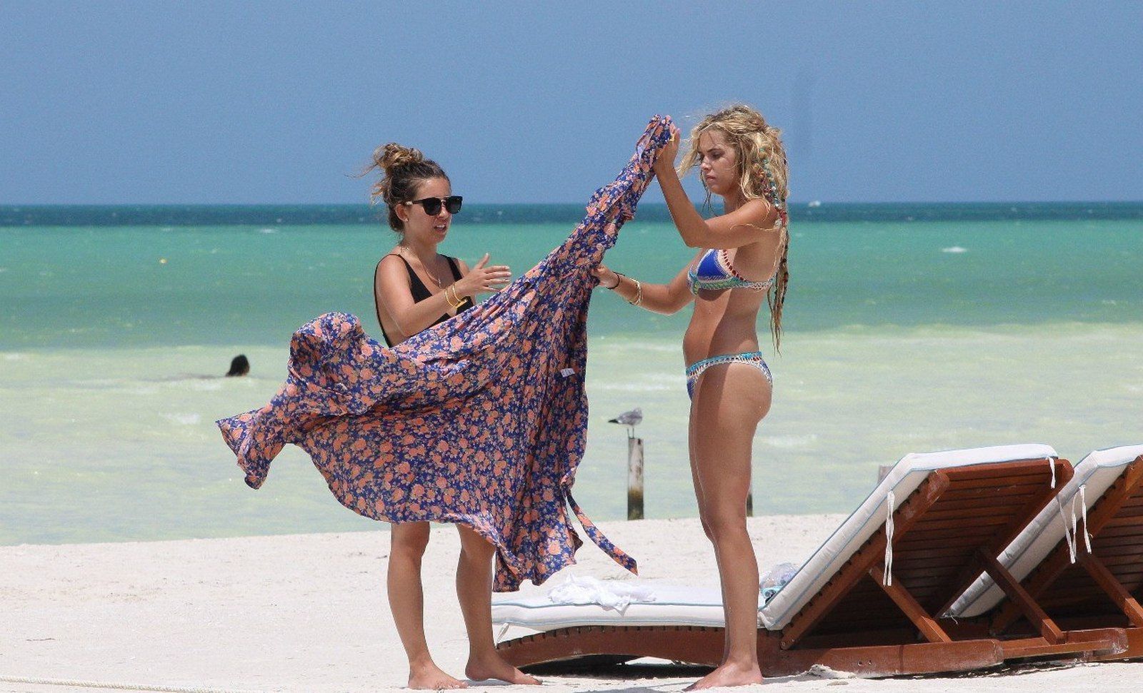 Эшли Бенсон — американская актриса, известная по ролям в сериалах «Дни нашей жизни» и «Милые обманщицы». Она снялась в фильме «Отвязные каникулы», где продемонстрировала обнаженное тело. Актрису неоднократно фотографировали папарацци, включая моменты отдыха на пляже.