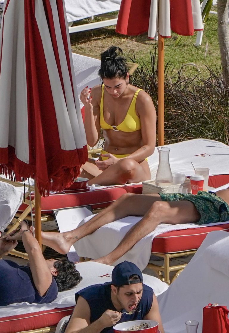 Папарацци запечатлели Дуа Липу на отдыхе в откровенном купальнике, где она позирует на песке. На фотографиях певица изображена в красных бикини и демонстрирует фигуру.