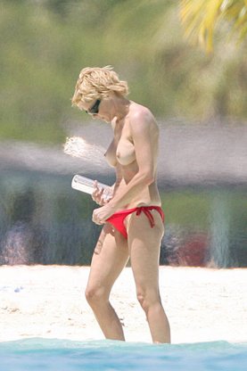 Актриса часто появлялась на пляже без верхней части купальника. Существуют фотодоказательства ее отдыха в таком виде от папарацци.