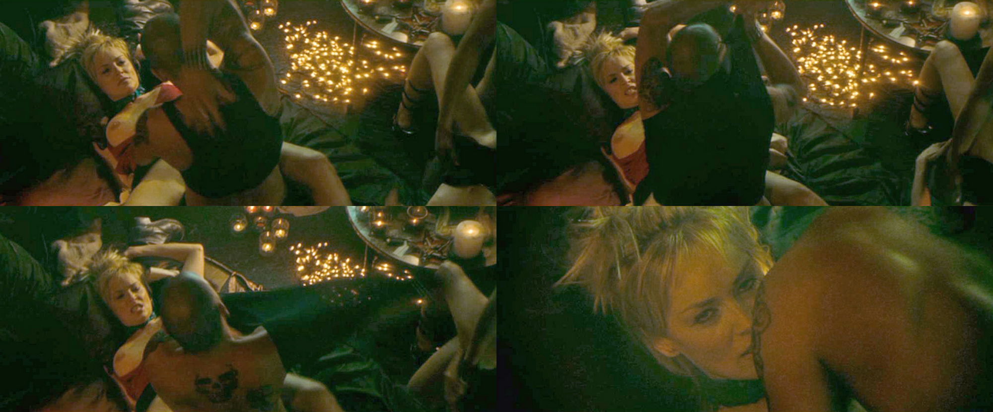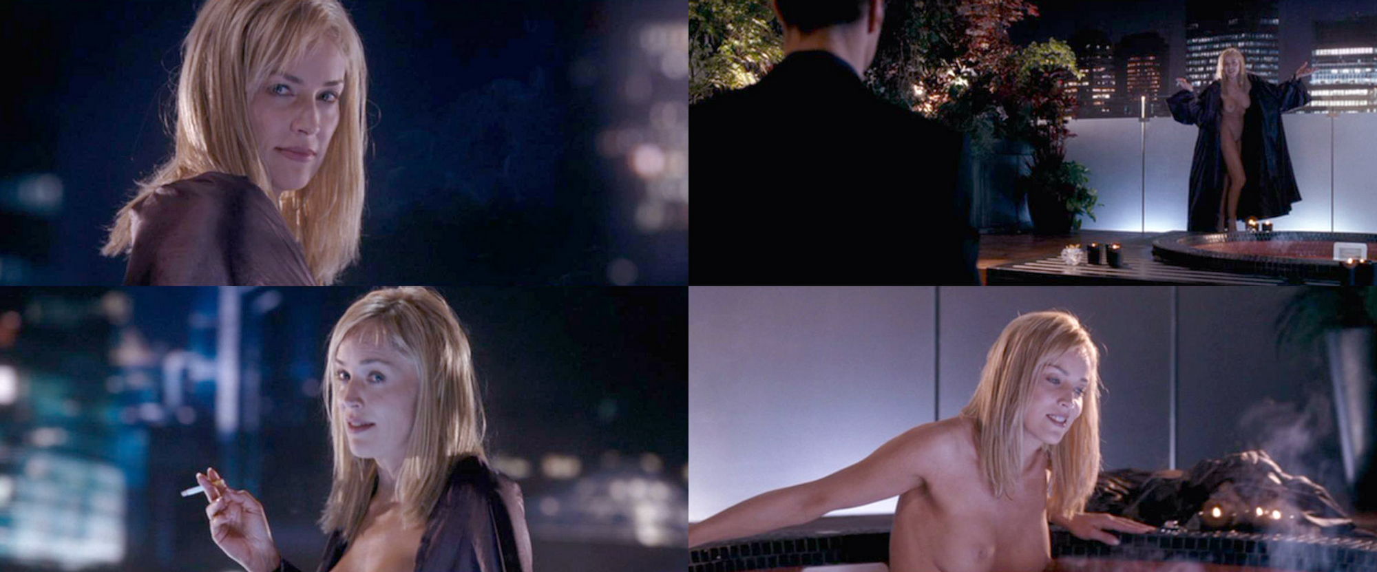 Шерон Стоун снималась в эротических сценах, включая обнаженную грудь и интимные моменты, как в кино, так и для различных журналов. Она также позировала в стиле ню и нижнем белье.