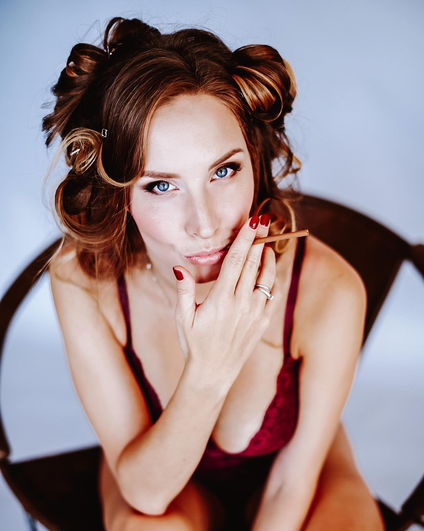 Актриса активно делится фотографиями на своем Instagram, где публикует снимки в нижнем белье и купальниках. Один из её фотосетов включает кадры в бордовом белье.