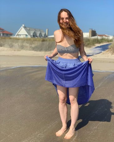В передаче «Утро в России» телеведущая предпочитает мини-юбки и блузы с глубоким декольте, которые акцентируют внимание на ее фигуре.