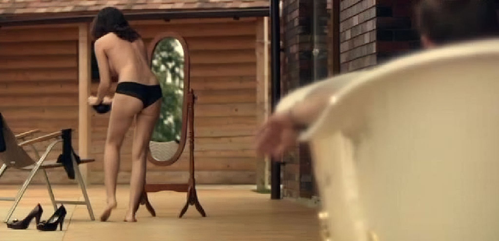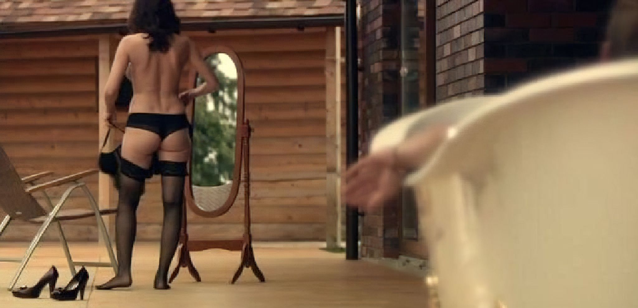 Также откровенные эпизоды с актрисой содержатся в лентах «Кровные узы» и «Выход», где она предстает в нижнем белье и купальнике.